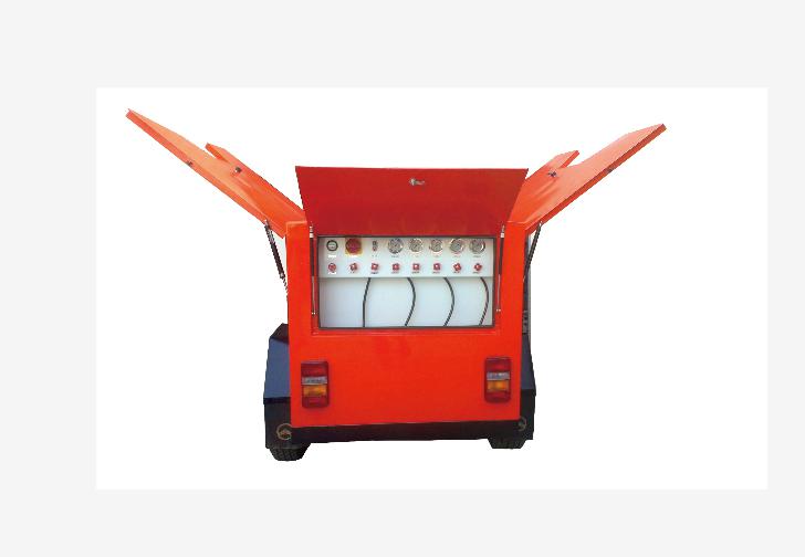7.呼吸过滤系统:空气处理量1280立方 8.高压气瓶组:6只50L/40MPa气瓶 9.防爆充气箱:两侧各装一只,8套充瓶软管和充气阀,一次可充8只空气呼吸器气瓶,配置关门自锁装 置。 10.空气质量检测仪:可分别检测充气管路里的空气中的CO、CO2、油、水分浓度是否超标,确保充灌的 空气达到EN12021呼吸空气标准。 11.空气呼吸器备用瓶架:50具 12.照明灯塔:4×500W泛光照明灯塔,气动可自由升降至离地8米 13.移动电源:输出220V单相/380V三相电源,最大10KW 14.警灯:排式警示灯/DC24V 15.整车的颜色以消防红为主调,采用进口优质烤漆 16.压缩机市网供电/随车发电机供电双电源接入装置 17.用户可选: